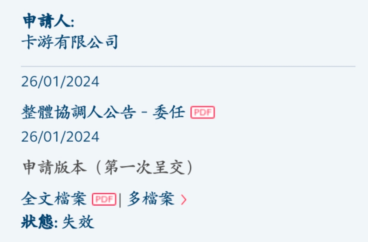 然而,在6月通过港交所上市聆讯后,其进度便处于搁置状态,而根据港交所规则,上市申请有效期为6个月——目前,其在港交所披露易网站上的状态已显示为“失效”。据悉,卡游于2021年了获得红杉中国和腾讯共计1.35亿美元的投资,启动了对赌,而明年如果未能上市,卡游需要以8%的年息回购,这也意味着卡游的命运进入了“生死时速”。