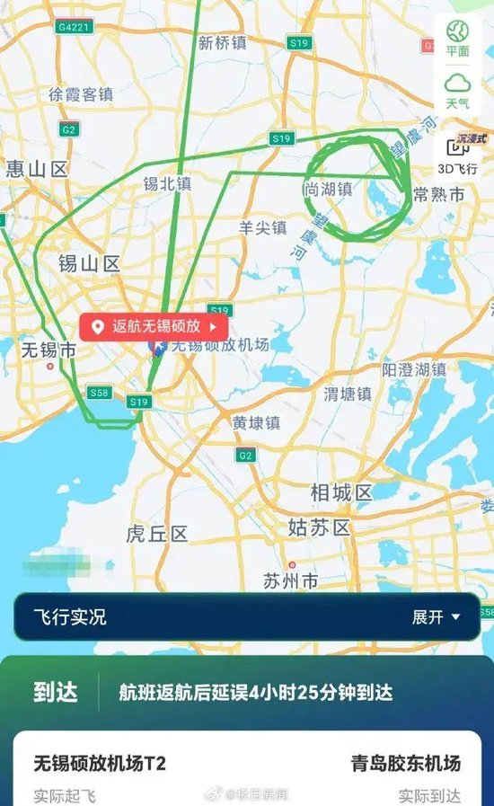 2日上午,无锡机场工作人员和航司客服均表示,查询显示“公司原因”返航,具体情况暂未公布。