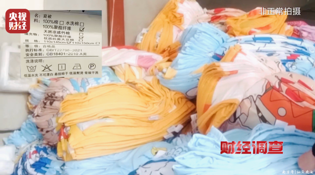 在豫鑫家纺店,一款批发价仅95元、年销20多万件的四件套被宣称为“全棉磨毛”,但实际含35%化纤,以此降低成本,再贴“全棉”包装宣传。即便单价低,商家也能凭网络销量赚取可观利润。